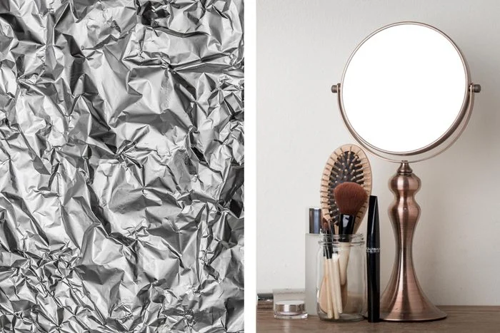 A vintage mirror with history is lovely—until those pesky dark spots steal the show. Here’s a no‑cost fix that borders on magic: slip a piece of aluminum foil behind the glass, shiny side facing out, and let it reflect the light right through the flaw. Secure it to the frame or backing (never the glass!) and watch the blemish vanish like smoke. Chic illusion, zero expense.